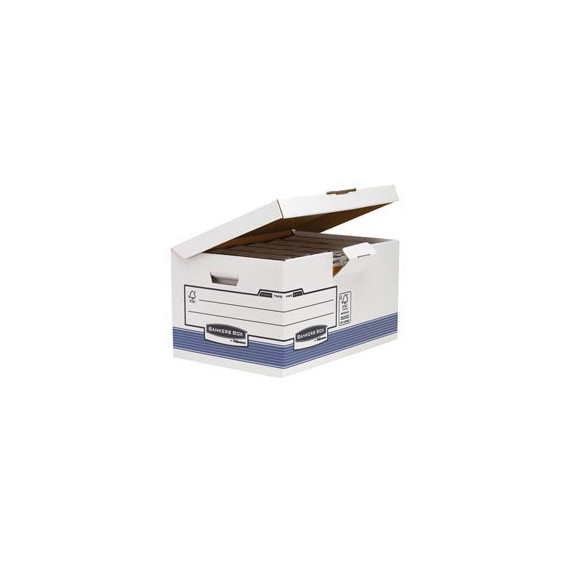 Scatola archivio Bankers Box System - con coperchio a ribalta - 37,8 x 29,3 x 54,5 cm - bianco - Fellowes