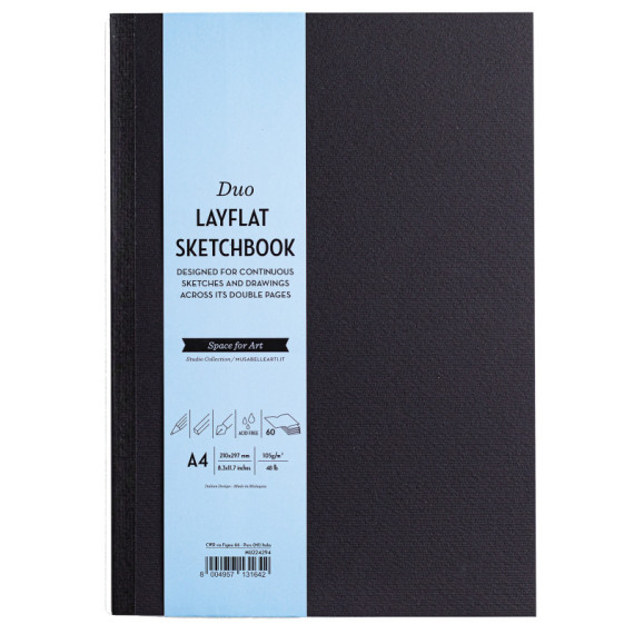 Sketchbook Duo Layflat - A4 - 105 gr - 60 pag - copertina nera - MUSA