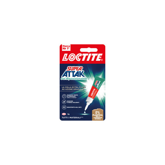 Colla gel riposizionabile. Grazie al maggior tempo di fissaggio (fino a 5 volte in più rispetto ad una colla Loctite Super Attak liquida) permette di riposizionare gli incollaggi imperfetti. Formula inodore e senza solventi. Tubetto da 3gr.