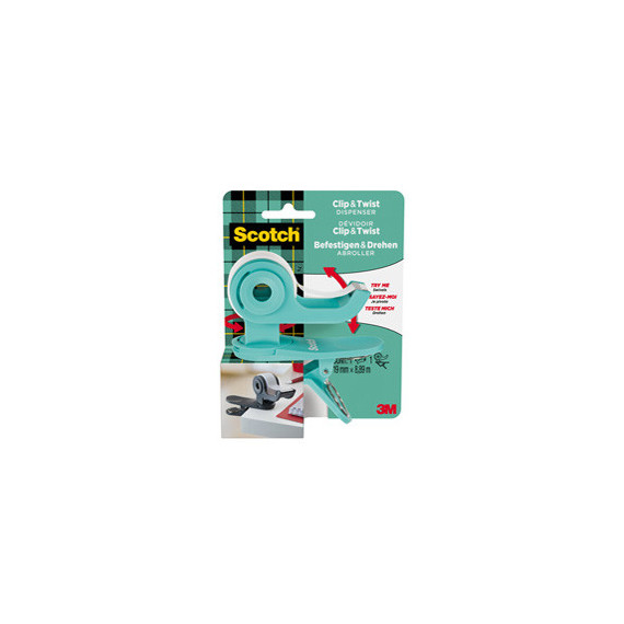 Dispenser Clip & Twist - per nastri 33 m - rotolo da 1,9 cm x 9,8 m incluso - grigio - Scotch