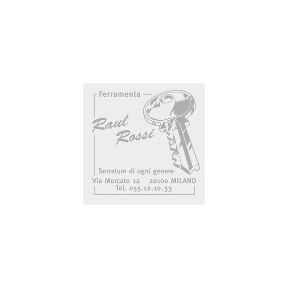 Personalizzabile su 8 righe con logo, indirizzo o altro testo. Area stampa 43x43mm.