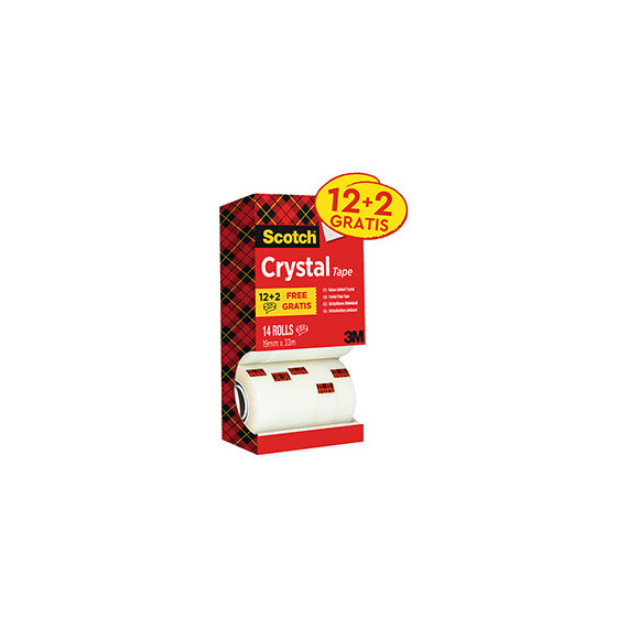 Nastro adesivo Scotch Crystal 600 - 19 mm x 33 m - acrilico - trasparente - Scotch - Value Pack 12+2 rotoli