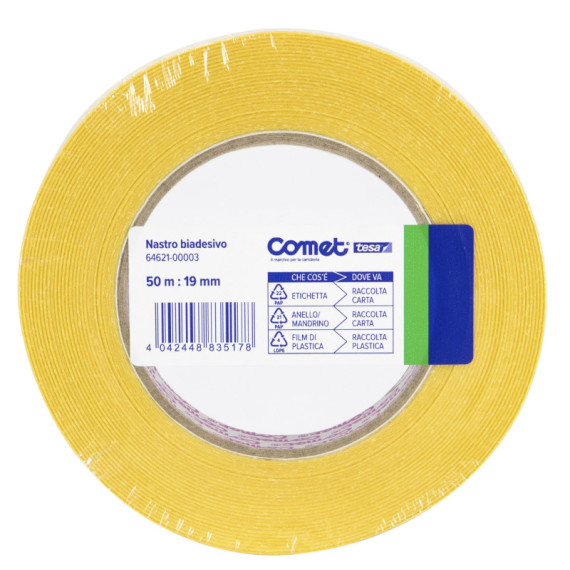 Nastro biadesivo - 19 mm x 50 m - PP - trasparente - Comet