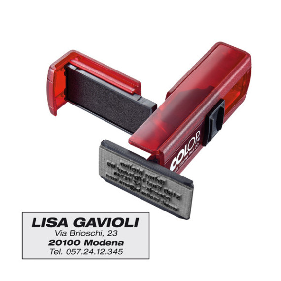 Timbro Pocket Stamp Plus 20 - 14 x 38 mm - 4 righe - autoinchiostrante - rosso rubino - Colop