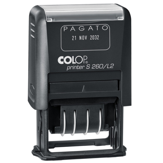 Timbro S260/L2 Datario + PAGATO - 4 mm - autoinchiostrante - bicolore - Colop