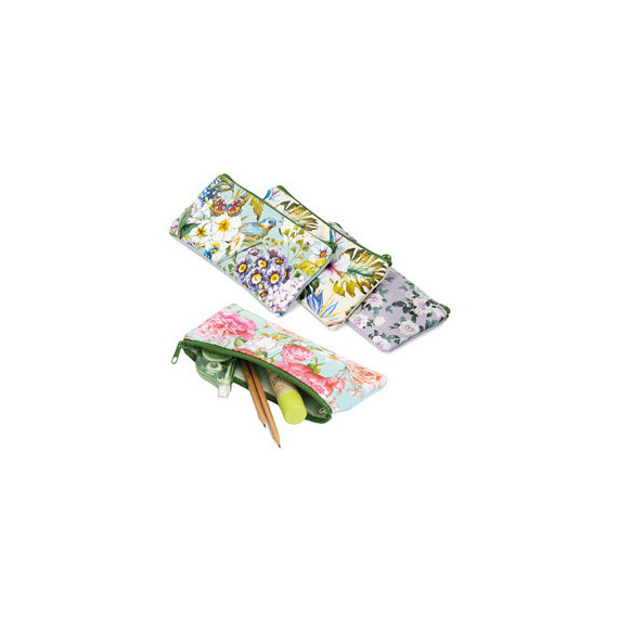 Bustina in tessuto di cotone dotata di zip in tinta personalizzata. Fornita in 4 fantasie assortite.