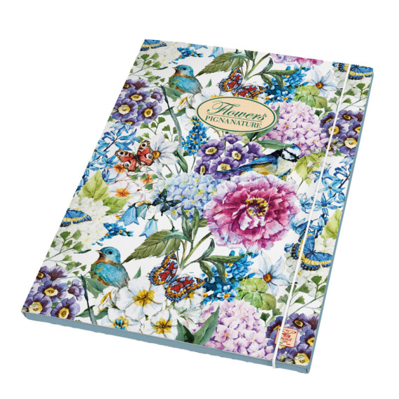 Cartella 3 lembi con elastico Nature Flowers - A4 - dorso piatto - fantasie assortite - Pigna