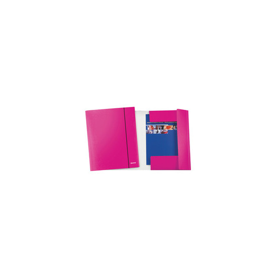 Cartella 3 lembi con elastico WOW - 25 x 35 cm - dorso variabile - cartoncino plastificato - fucsia metal - Leitz