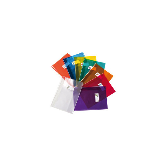 Coprimaxi in PVC trasparente cristallo liscio 140my, formato A4. Dotato di alette salva pagina e patelle interne in PVC 120my. Tasca porta nome personalizzabile.