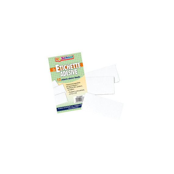 Segnanomi/segnatitoli per personalizzare o identifi care libri, quaderni e raccoglitori. Realizzate in carta patinata. Busta da 12 etichette bianche. Misure: 6,3 x 2,8cm.