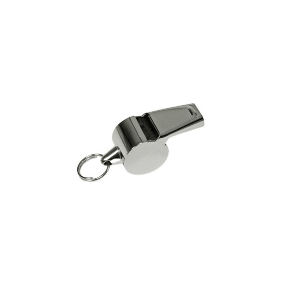 Fischietto in metallo cromato con anellino per l aggancio di una cordicella o di una catenella. Per arbitro, bagnino, polizia locale e vigili urbani.