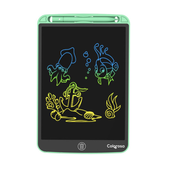 Lavagnetta LCD elettronica. Tratto multicolore, area di scrittura 10. Dotata di penna e pulsante per cancellare. Pila modello CR2025 inclusa nella confezione. Colori assortiti verde e giallo.