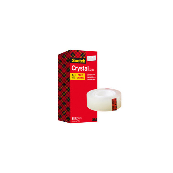 Nastro adesivo Scotch Crystal 600 - 19 mm x 33 m - acrilico - trasparente - Scotch - Value Pack 7+1 rotoli