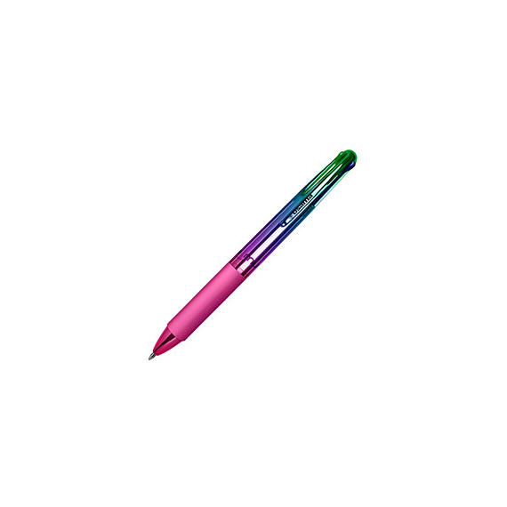 Penna a sfera con 4 colori di inchiostro (blu, rosso, verde e nero). Inchiostro ultra-fluido e super scorrevole, punta 1.0mm. Dotata di pratica clip.