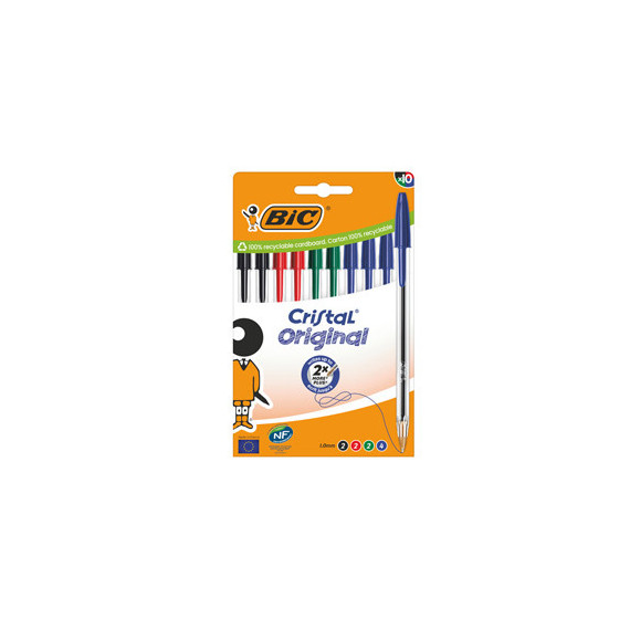 Penna a sfera Cristal - punta media 1,0mm - colori assortiti - Bic - conf. 10 pezzi