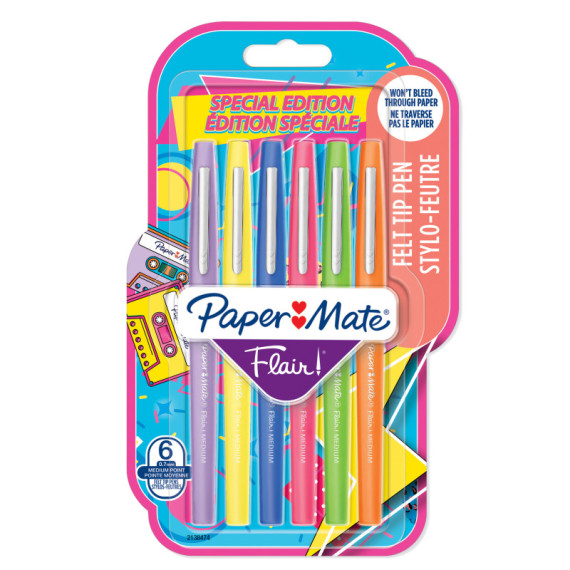 Pennarello Flair Nylon - punta feltro - 1,10mm - colori assortiti Retrò - Papermate - conf. 6 pezzi