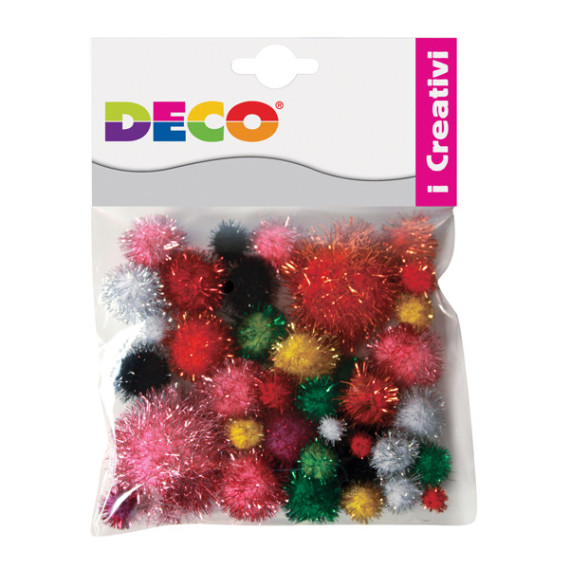 Pompon Lamè - 7-28 mm - colori assortiti - Deco - conf. 40 pezzi