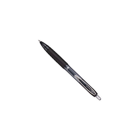 Roller a scatto con inchiostro gel pigmentato a base d'acqua resistente alla luce e all'acqua che garantisce la tenuta sulla carta nel tempo. Rapida asciugatura. Ideale per firmare assegni e documenti legali. Punta 0,7mm. Colore: nero. Ricaricabili con reffil UMR 87