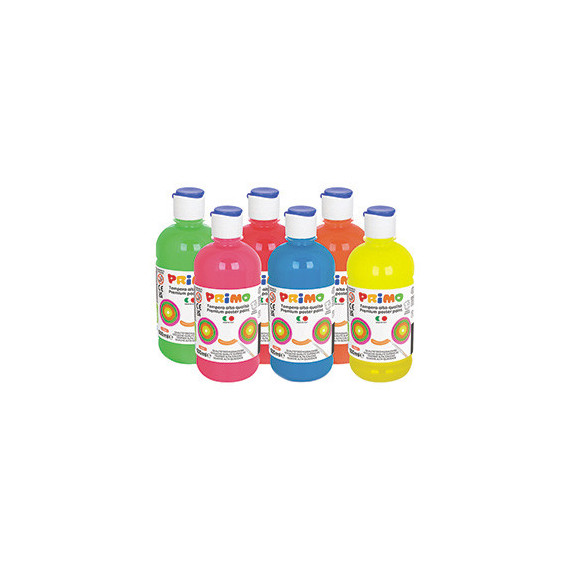 Tempera brillante perlata - 500ml - colori fluo assortiti - Primo - box 6 colori