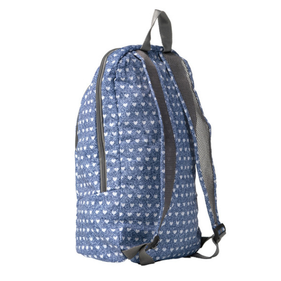 Zaino ripiegabile in resistente tela. Dotato di spallacci traspiranti e tasca esterna multiuso. 12 fantasie assortite. Dimensioni 28x44x15cm.