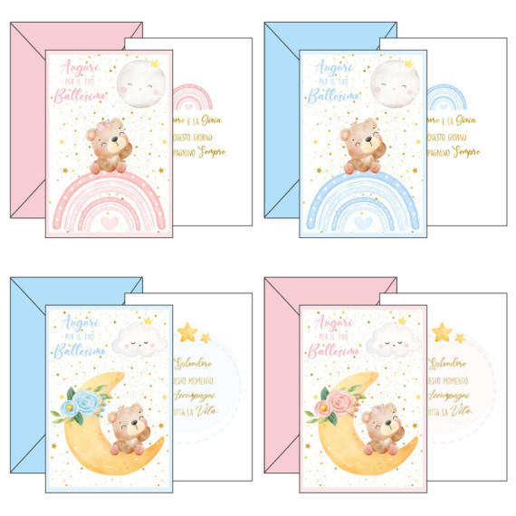 Biglietto auguri Battesimo - 11,7 x 17 cm verticale - 4 soggetti assortiti - Kartos