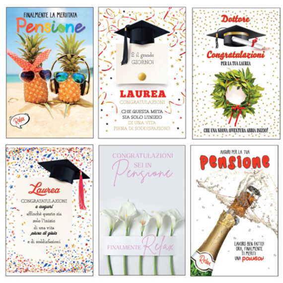 Biglietto Laurea/Pensione - con glitter - fantasie assortite - Rex Sadoch