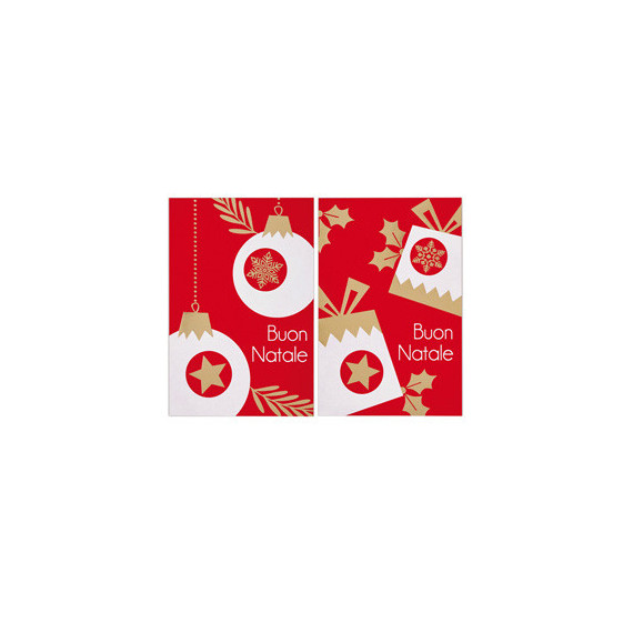 Biglietto Natale - doppio - 9 x 14 cm - cartoncino - fantasie assortite - rosso - Rex Sadoch