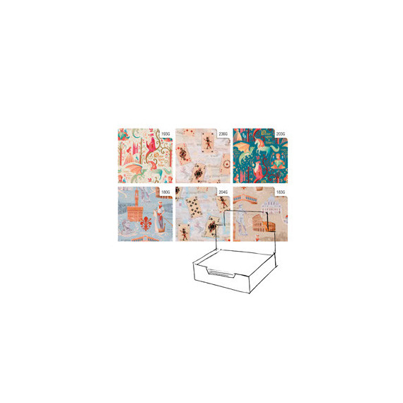 Carta da regalo patinata di grammatura superiore extra resistente 75-80gr/m2. Display da tavolo con 6 fantasie assortite.