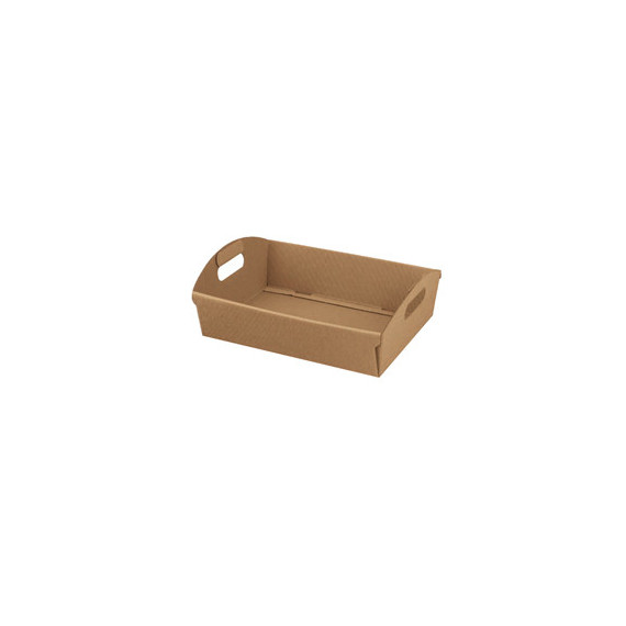 Cesto in cartone Onda colore avana. Dotata di maniglie laterali per un facile trasporto. Dimensioni: 37x26,5x10cm. L'articolo viene fornito senza contenuto.