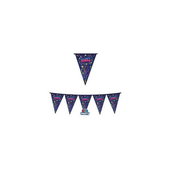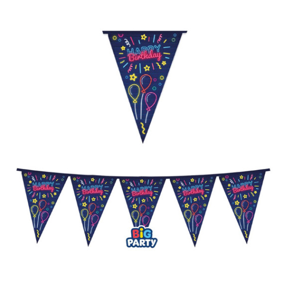 Festone bandiere - 3 metri - Happy birthday - neon - Big Party