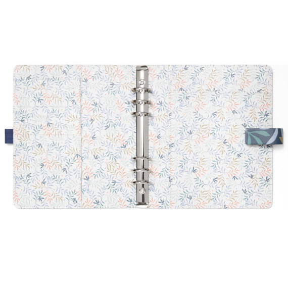 Organiser della nuova collezione Botanical di design accativante ed interni fantasia, ispirato ai colori della natura. Copertina liscia a motivi Botanical, chiusura con cinturino. Dotato di anello portapenna e tasche interne. Contiene agenda settimanale su 2 pagine multilingua. Carta da 80gr, adatta a penne stilografiche.