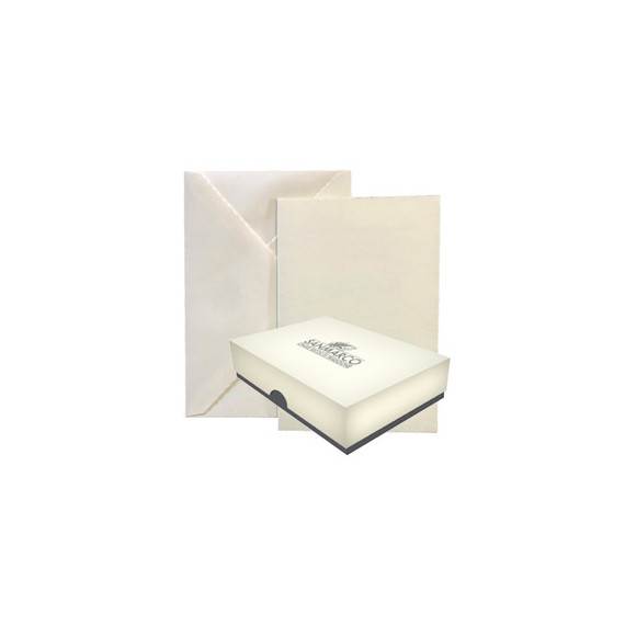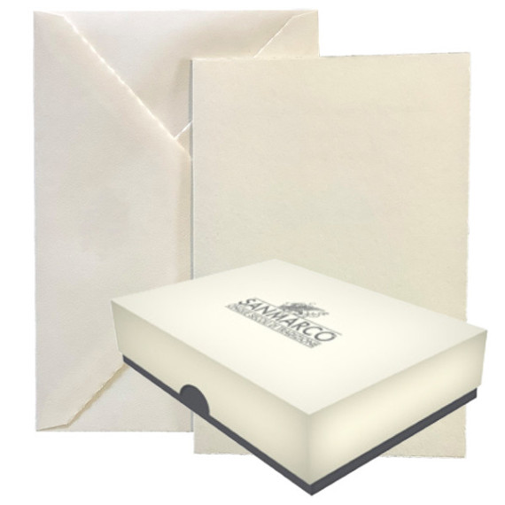 Linea avorio in carta morbida con taglio a mano. Scatola composta da 50 biglietti partecipazione con taglio a mano, piegato a libro, color avorio da 260gr formato 112x168mm. 50 buste taglio a mano color avorio da 120gr formato 120x175mm con patella gommata e taglio orizzontale.