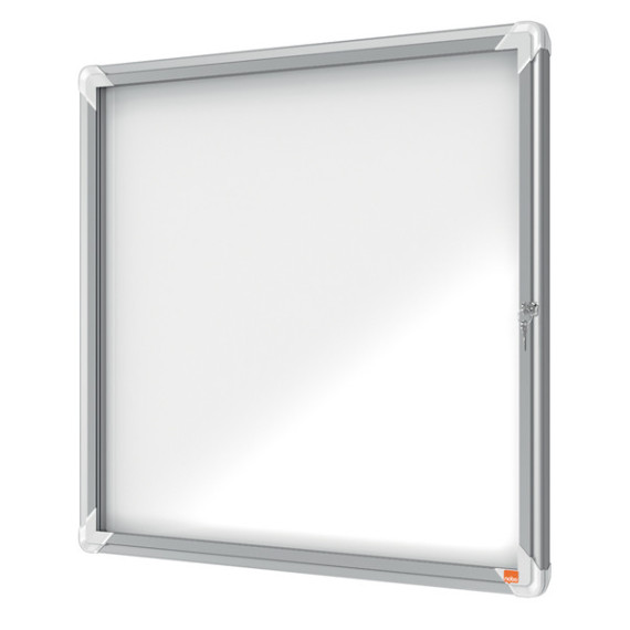 Ad anta battente. Moderna, sicura e resistente all'umidità. Robusta cornice in alluminio e vetro di sicurezza da 4mm. Fondo in acciaio bianco magnetico e scrivibile con pennarelli a secco. Fissaggio semplice effettuabile da una sola persona. Serratura con 2 chiavi. Dimensioni esterne: 70,9 x 66,8cm Dimensioni interne: 65 x 70,9cm