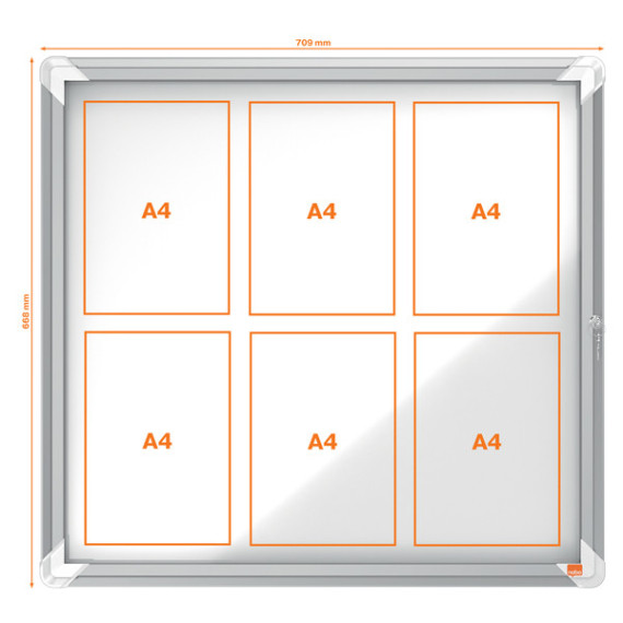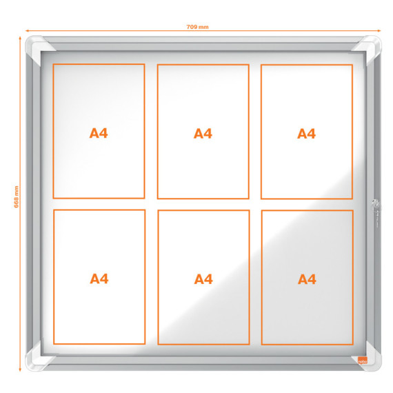 Bacheca per esterni - fondo magnetico bianco - 6 fogli A4 - orizzontale - Nobo