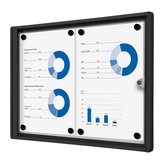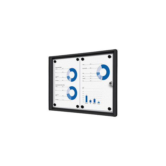 Bacheca per interni - con ante battenti - 2 fogli A4 - cornice nera - orizzontale - Showdown