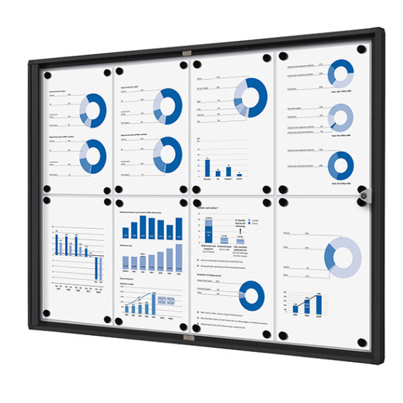 Bacheca per interni - con ante battenti - 8 fogli A4 - cornice nera - orizzontale - Showdown