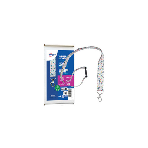 Cordoncino per portabadge - in Rpet - fantasia floreale - 440 x 20 mm - Avery - Conf. 10 pezzi