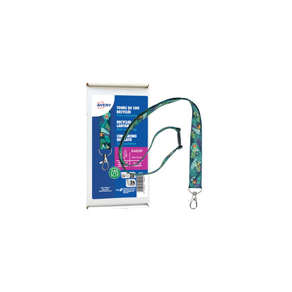 Cordoncino per portabadge - in Rpet - fantasia tropicale - 440 x 20 mm - Avery - Conf. 10 pezzi