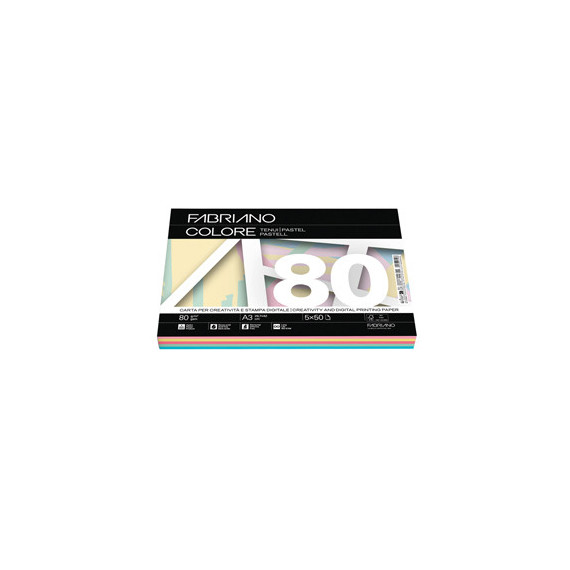 Carta Fabriano Colore - A3 - 80 gr - mix 5 colori tenui - Fabriano - conf. 250 fogli