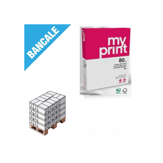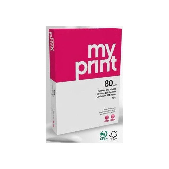 Carta fotocopie A4 My print 80gr bianca,500ff in risma - bianco elevato - Certificata FSC,ECF,ECOLABEL