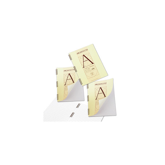 Blocco architetto spiralato per disegni. Formato 22x29,7cm. 40 fogli da 100gr. Rilegatura quadri 10mm.