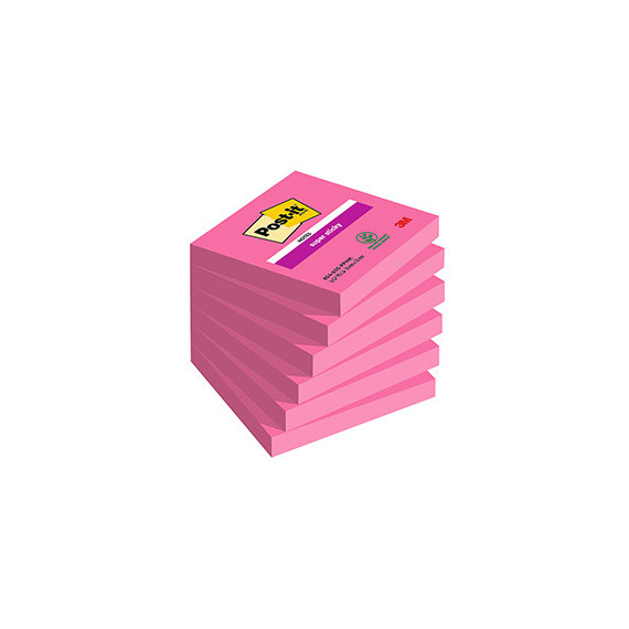 Blocco Post-it Super Sticky - 654-6SS-PPNK - 76 x 76 mm - rosa power - 90 fogli - Post-it - conf. 6 pezzi