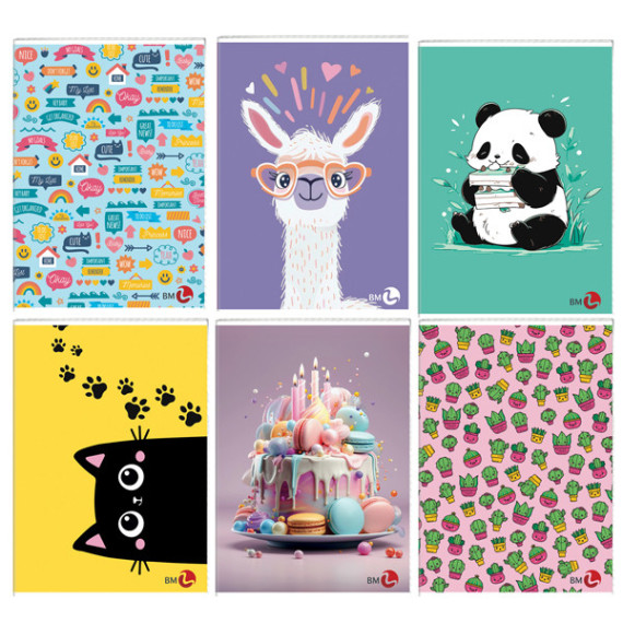 Maxiquaderno con copertina in cartoncino da 200gr con verniciatura a U.V. Carta da 80gr, 40+2 fogli. Rilegatura con punto metallico.