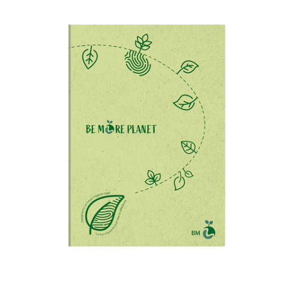 Nuovo maxiquaderno Be More Planet realizzato con materie prime ecosostenibili FSC. Assortimento con 9 colorazioni ispirate alle sfumature della natura. 100% plastic free. Rilegatura con punto metallico.