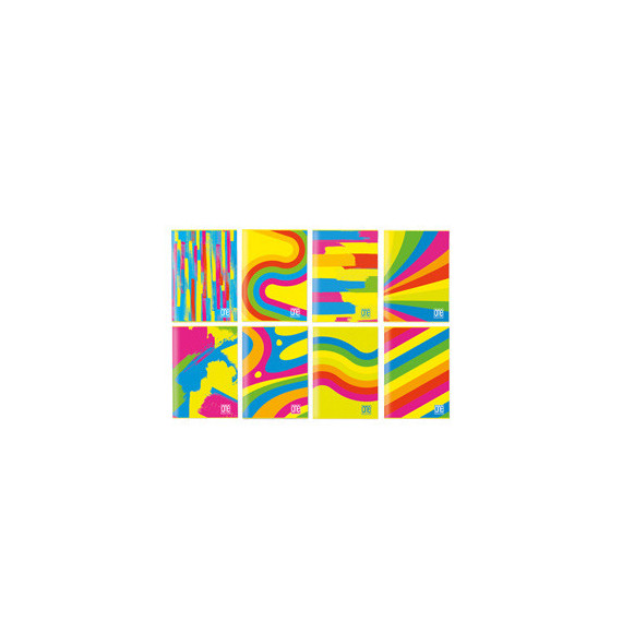 Maxiquaderno in carta da 80gr, punto metallico. Copertine assortite in vivaci colori fluo.
