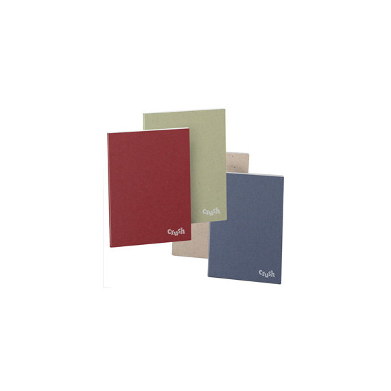 Quaderno Crush realizzato con il 15% di residui di ciliegie, kiwi, lavanda e cacao e prodotto con energia rinnovabile. Riciclabile e biodegradabile.