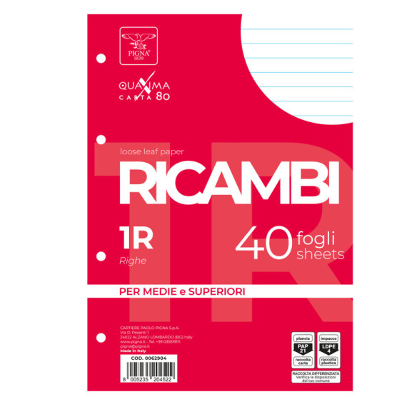 Ricambi forati Quaxima - A4 - 1 rigo - 80 gr - Pigna - conf. 40 pezzi
