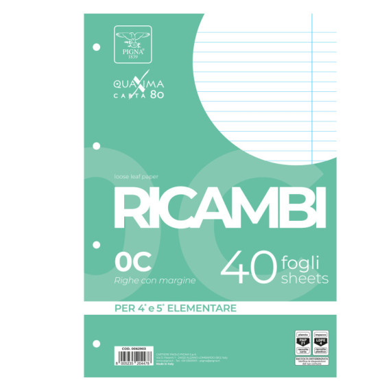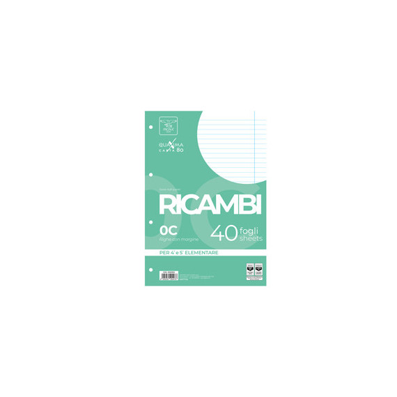 Ricambi forati Quaxima - A4 - 1 rigo c/margine - 80 gr - Pigna - conf. 40 pezzi