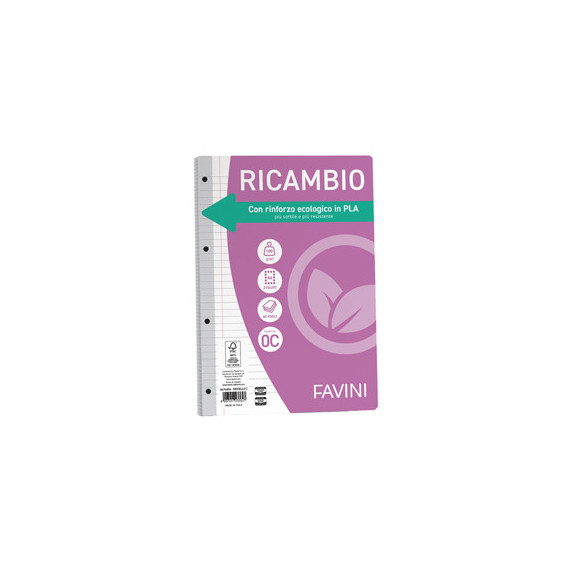 Ricambi forati riforzati ecologico - A4 - 1 rigo c/margine - 100 gr - Favini - conf. 40 pezzi