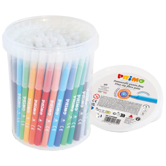 Pennarelli punta fine - colori assortiti - Primo - secchiello 96 pezzi